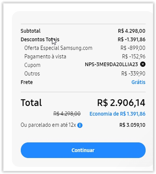 No mercado livre loja oficial Samsung tá saindo $2400 parcelado sem juros mas sem a sound bar
