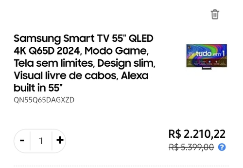 [Vip] Samsung Smart TV 55" QLED 4K Q65D 2024, Modo Game, Tela sem limites, Design slim, Visual livre de cabos, Alexa built in