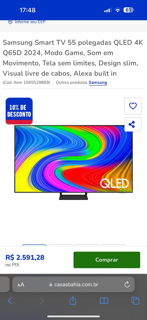 Essa tv com soundbar hw-b550 por 3400 (por conta do cashback) tá valendo??