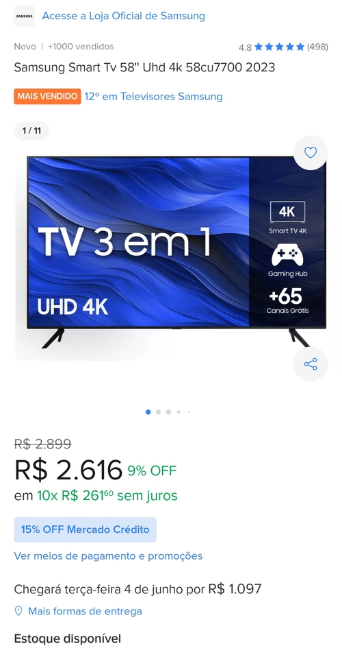O preço está até ok por poder parcelar de 10 vezes. Mas o tempo de entrega aqui aparece pra 10 de junho. Pra vocês também está assim? Um mês é tenso