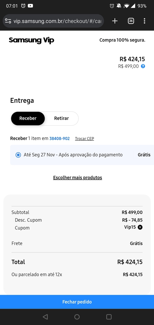 Samsung Vip é minha Pi#%… Assinei esse plano para poder pegar um tablet (s9 plus) mas o preço fica mais alto do que quando se compra direto no site normal + cupom (ex. Quintablue16). Muita sacanagem da parte deles.