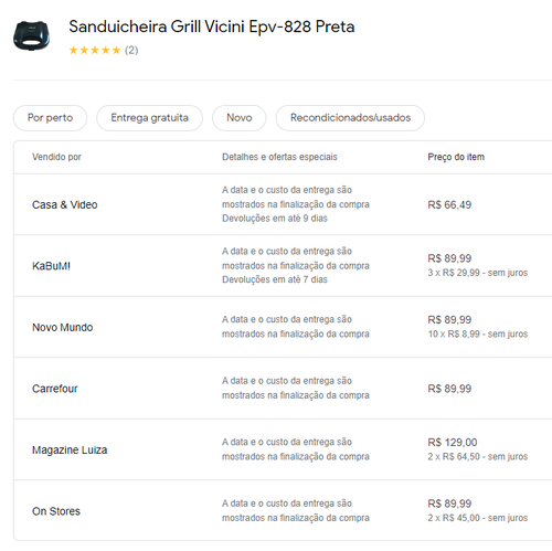 Menor preço segundo o Google Shopping