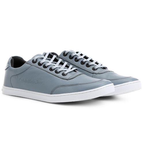 É um sapatênis da Calvin Klein Jeans, feito em couro, e tem fechamento em cadarço. A sola é em borracha e pesa cerca de 280g.