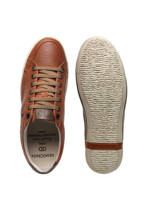 Sapatênis Couro Democrata Textura Caramelo/Marrom - R$90