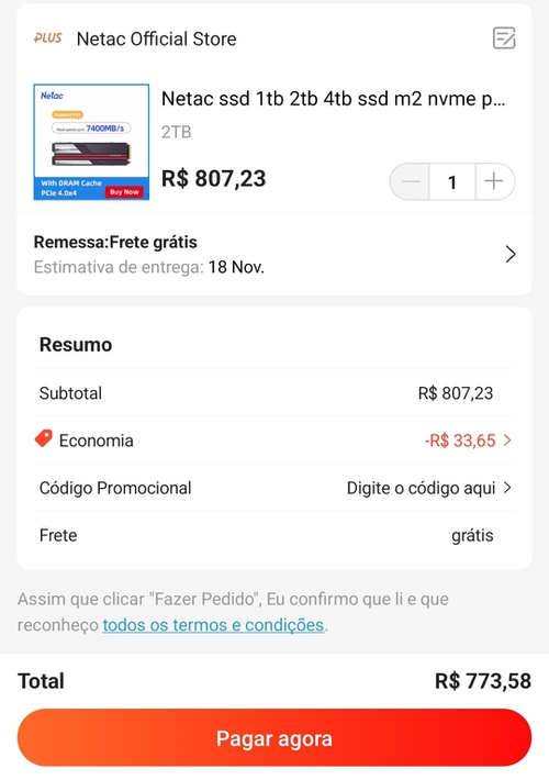 • São 2 cupons 1 do vendedor e outro aplicável no carrinho• Caso o primeiro cupom não apareça pra resgatar aplique em "meus cupons" (NT1028)• Um dos melhores SSD flash chineses.• Totalmente funcional no PS5REGISTRO DE PREÇO NO MOMENTO DA POSTAGEM (14:37H)