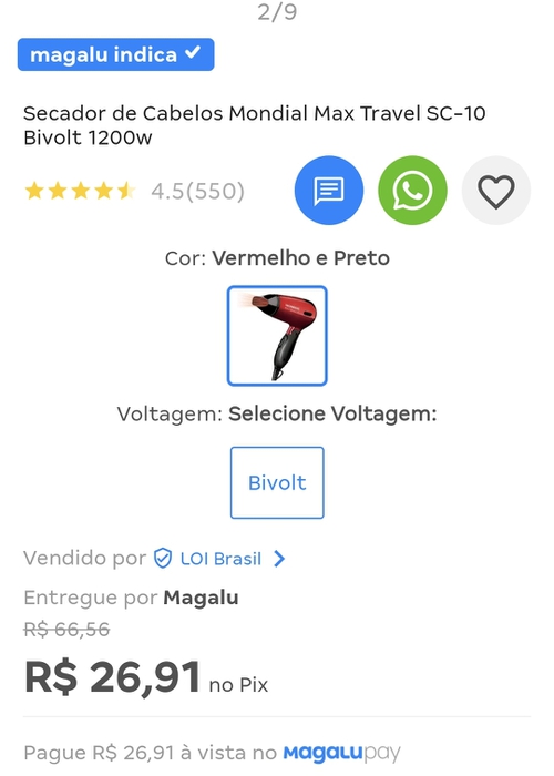 uau ta barato demais! esse secador quebra galho demais quando não da pra fazer uma mala muito grande <3
