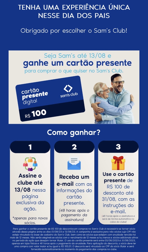 Seja sócio Sam's Club e ganhe um vale cartão presente de R$100