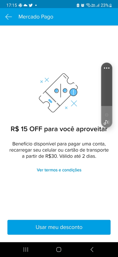 Obrigado pela promoção. Acabei de colocar R$30 de recarga de celular pagando só R$15.