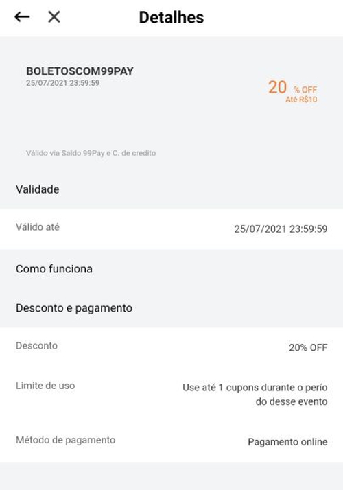 [SELECIONADOS] 20% OFF para pagar boletos na 99Pay