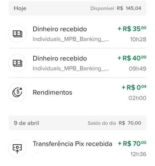 Coloquei ontem e hoje recebi R$40,00 + R$35,00 kkkk