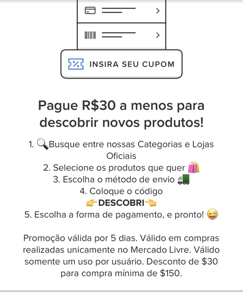 [SELECIONADOS] Aplique cupom Mercado Livre e ganhe R$30 OFF comprando acima de R$150