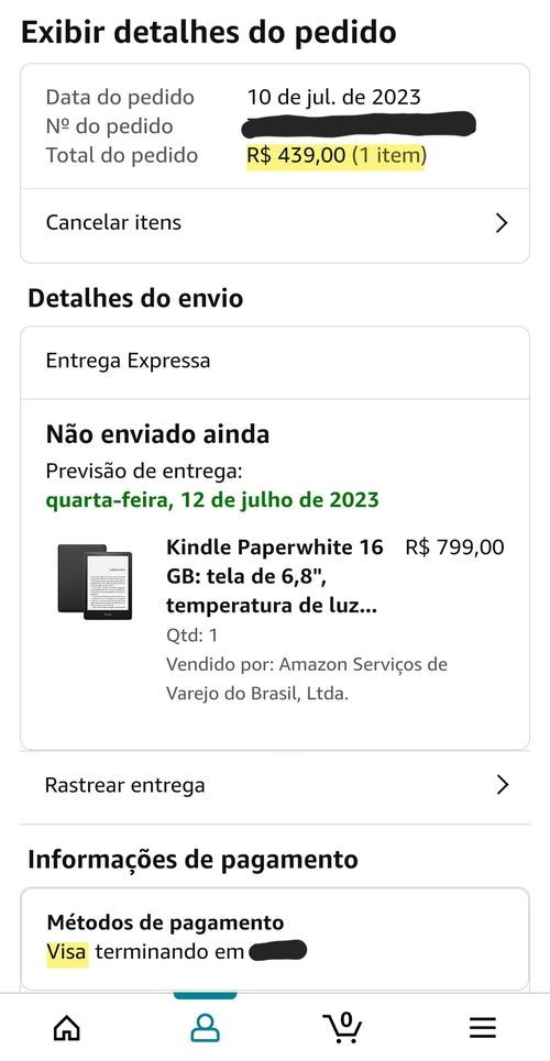 Eu consegui comprar, ai meu cartão compra. E a amazon disse que tinha de ajustar a forma de pagamento, e o valor foi para 639,00.