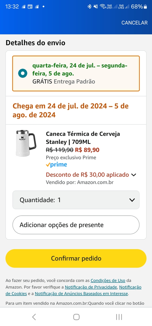 Aqui saiu a R$ 89,90 com o cupom 30APP