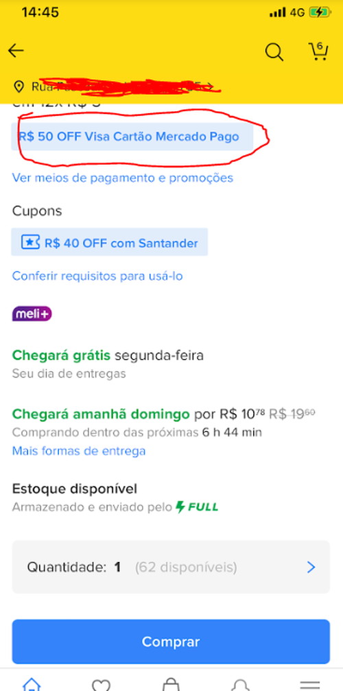 O mercadolivre me avisou deste cupom logo em baixo do preço de um anúncio no app.