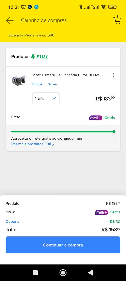Moto esmeril por R$ 154 em 6x sem juros, chega amanhã.