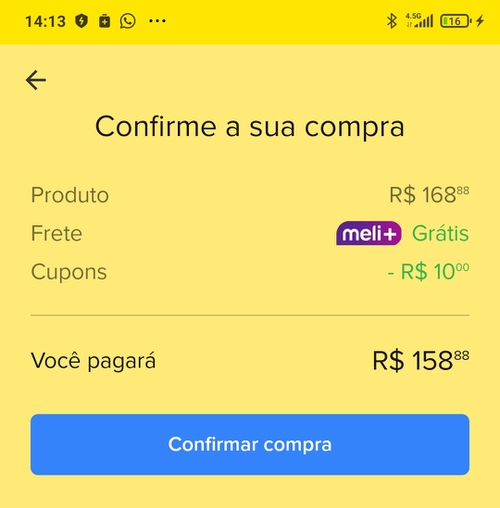 fiz uma compra de 168 reais. Coloquei aleatoriamente na área de cupom: VALE10