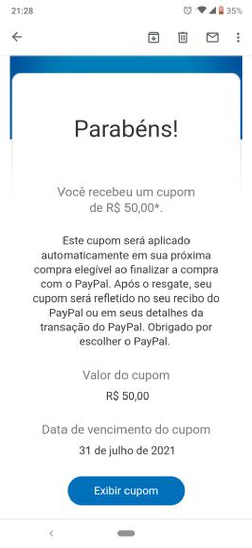 (SELECIONADOS) Cupom do PayPal de R$50