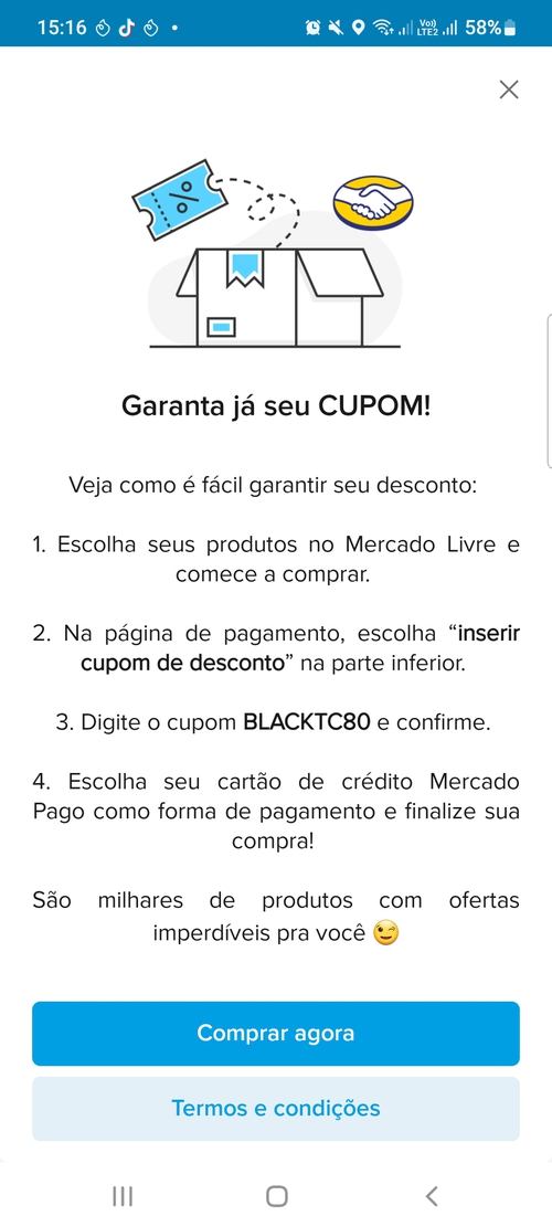 [SELECIONADOS] Cupom Mercado Livre R$ 80 OFF em compras acima de R$ 400 com cartão mercado pago