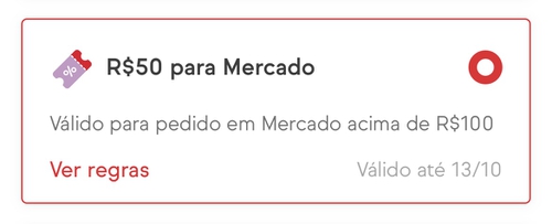 Uso o iFood com certa frequência, recebi o de R$ 50,00, escolhi comprar no Pão de Açúcar, produto estava com desconto da loja e ainda aplicou o cupom… saiu com quase 50% de desconto… Valeu muito à pena!!!