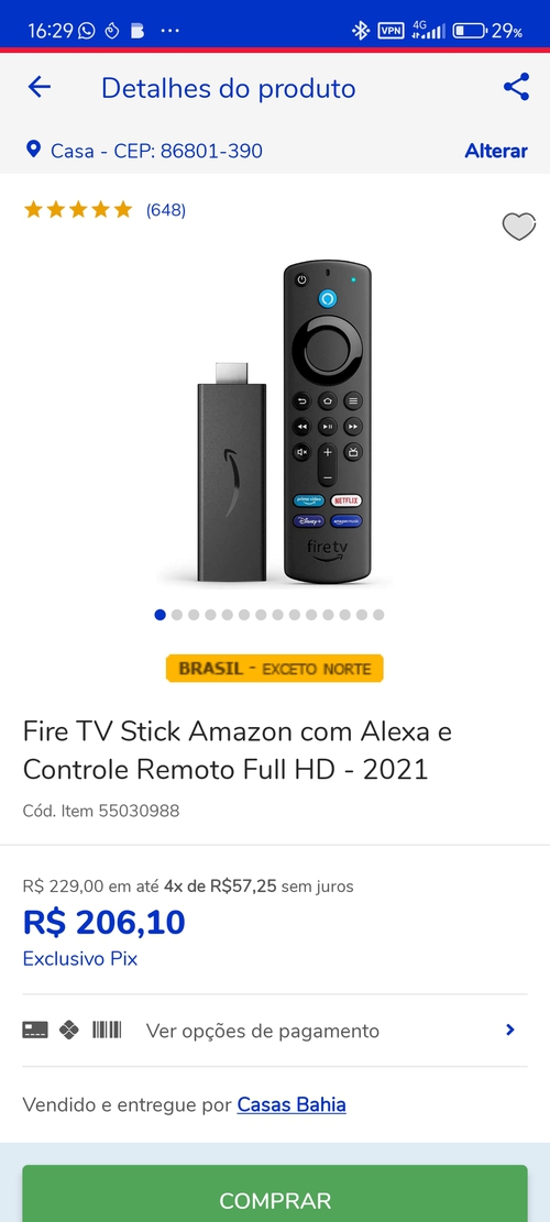 [Selecionados] Fire TV Stick Amazon com Alexa e Controle Remoto Full HD - 2021
