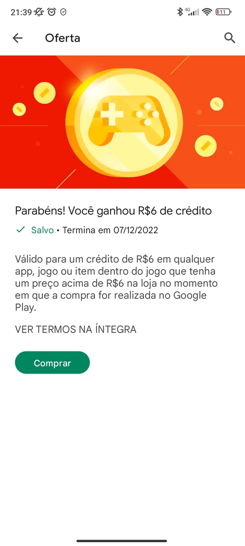 [Selecionados] Ganhe 6R$ para gastar em jogos ou apps da Google Play