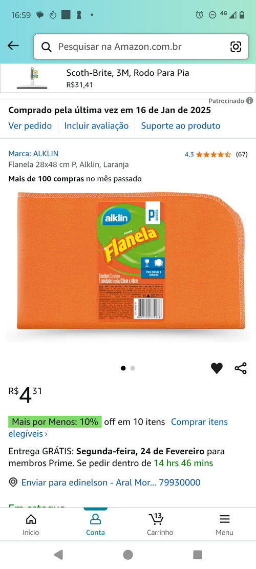 Em casa comprei essa flanela esses dias, o mais barato que achei elegível