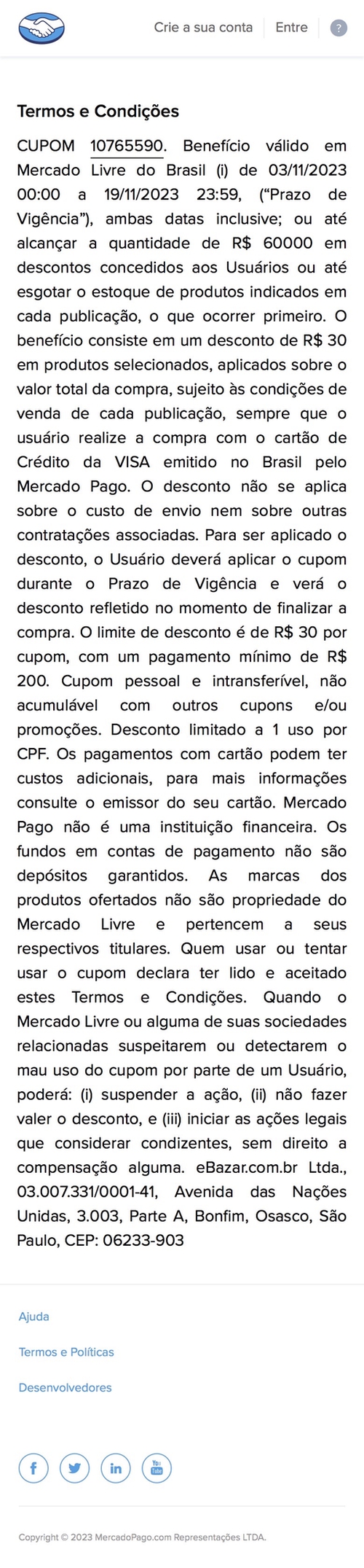 [SELECIONADOS] Ganhe R$30 OFF em compras acima de R$200 utilizando cartão Mercado Pago