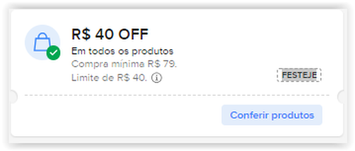 São produtos selecionados, então vá em configurações, no campo de cupons, insere e veja os produtos. Outro detalhe é, precisa ser o seu mês de aniversário.