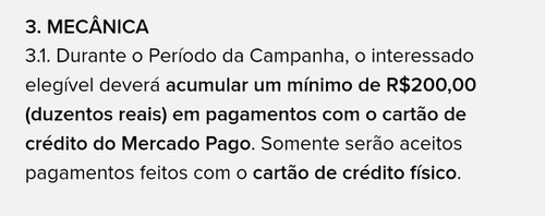 Pra mim, falaram que precisaria gastar R$ 200 no cartão.. pra mim não compensa..