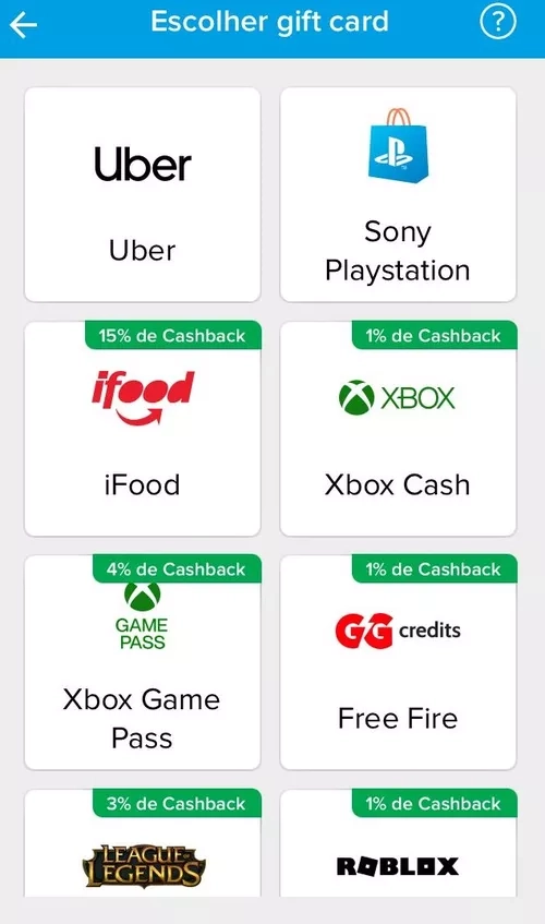 SELECIONADOS! Vejam se apareceu a notificação no app ou direto nas opções de compra do Gift Card - mínimo R$30 (para mim, o máximo era o de R$100).