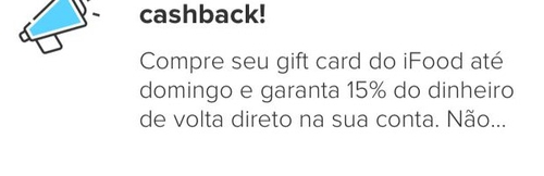 [SELECIONADOS] Gift Card IFOOD com 15% de dinheiro de volta no Mercado Pago