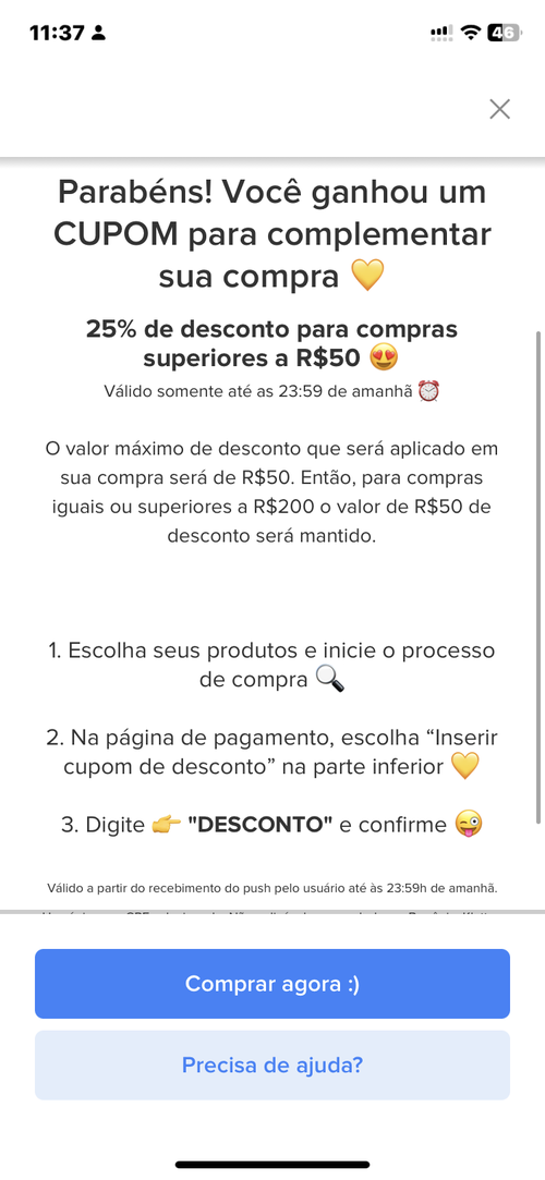 Hoje esses cupons praticamente impossíveis resolveram funcionar na minha conta 😂
