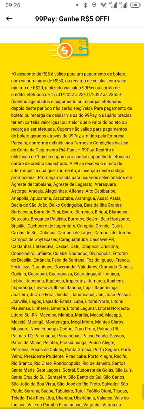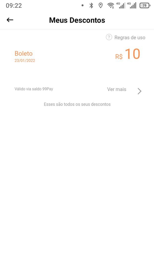Aqui foi, valeu. O 99 nem mando a notificação aqui mais tava la o desconto.