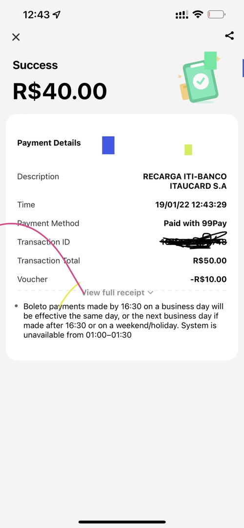 Paguei um boleto de R$50,00 do Iti com o saldo em conta da 99 e deu tudo certo.