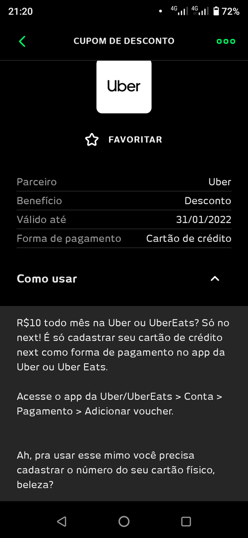 O Uber não está dando desconto no Next e recusando a forma de pagamento