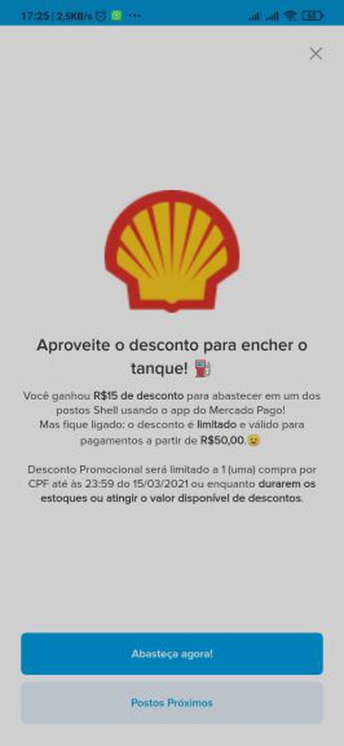 Promoção muito boa para quem tem postos Shell de confiança próximo de suas residências, mas pra mim aqui de Niterói / RJ infelizmente nunca mais irei abastecer.