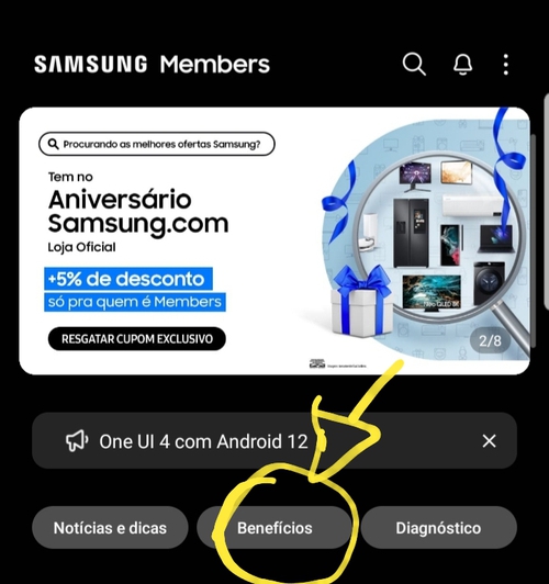 Vá no app do Samsung Members (se não tiver, baixa na Galaxy Store)