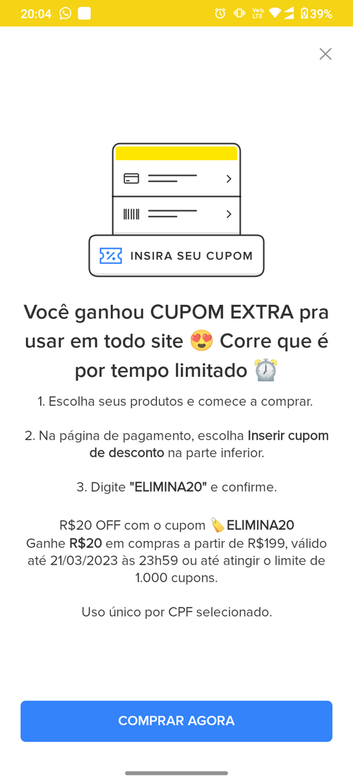 Ao comprar por meio de uma promoção em nosso site, o Pelando pode receber da loja parceira uma comissão sobre a venda.
