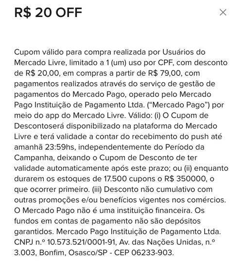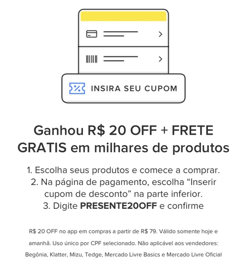 recebi a notificação no APP e mesmo assim o cupom não funciona. ML dá começando a ficar avacalhado.