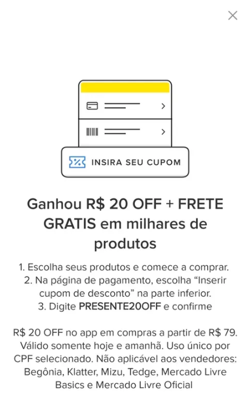 Recebi esse cupom tbm pelo ML , mas não funcionou nem com o dobro do valor