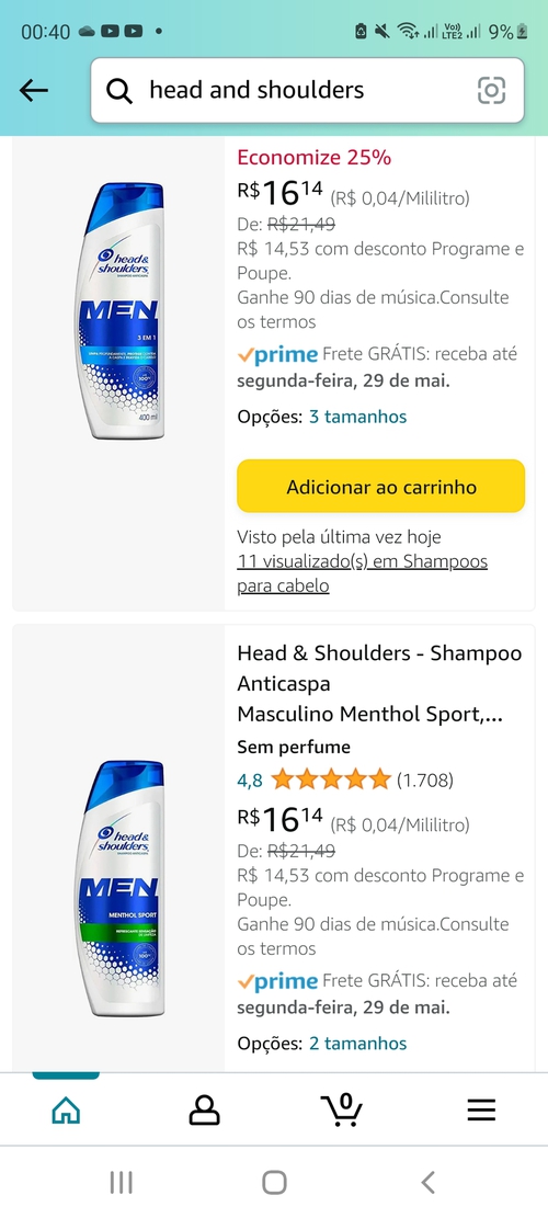 Pra quem não conseguir, tem Head and Shoulders saindo de menos de 15.