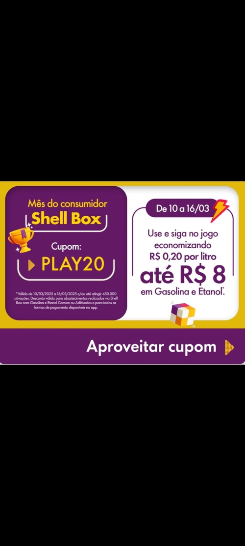 Economize R$ 0,20/Litro limitado a R$ 8 no Shellbox