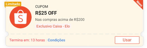 Use o cupom CAIXAELO1503 no APP Shopee e ganhe R$25 de desconto em compras acima de R$200 no crédito.