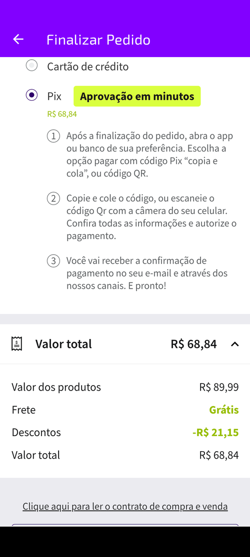 Pelo app fica mais barato que via site (76,49 cada) mas não aplica os cupons.