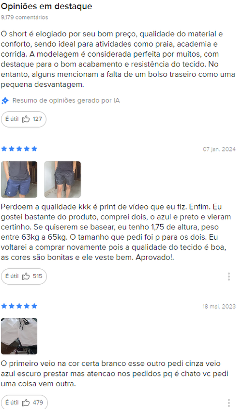 Já comprei e devolvi. Em resumo: é muito ruim. Material de baixa qualidade, acabamento ruim, molde desajustado. É um short de camelô furreco mesmo. Não vale a pena nem por esse preço, melhor investir um pouquinho e comprar um melhor.