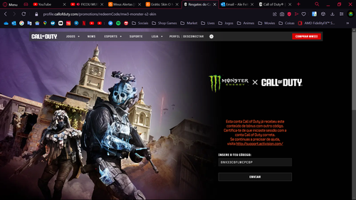 O link pra resgatar a skin eh a.atvi.com/MonsterRanked mas onde resgata o código eu N achei ainda kkkk post preguiçoso