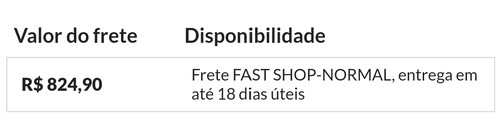 R$ 899,00 Frete FAST SHOP-NORMAL, entrega em até 13 dias úteis