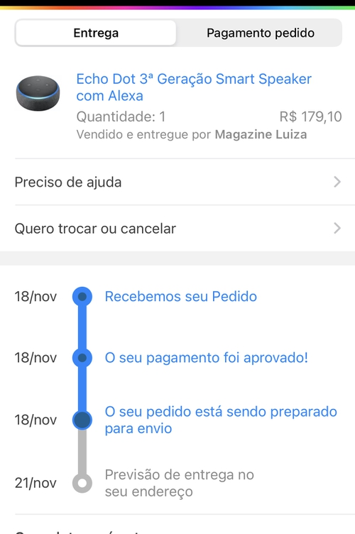 Mas essa Echo Dot 3ª Geração está por R$ 179,10 no próprio site da Amazon, e com o cupom APP20, fica R$ 159,10