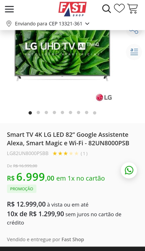 Esse preço aí vale muito a pena. Comprei na promoção de abril que postaram aqui por 8500 + 15% de cashback. A maioria das vezes eu nem assisto mais filmes na 65CX, prefiro perder qualidade de imagem e ver nessa de 82, é uma experiência incrível. E tanto essa de 82 quanto a de 86 são 120Hz nativos ao contrário de todas as outras UN8000 menores
