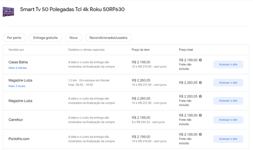 Menor preço segundo o Google Shopping